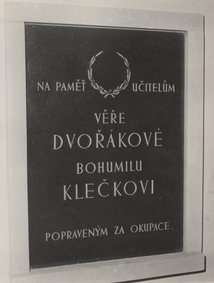 Pamětní deska odhalena na chodbě školy.