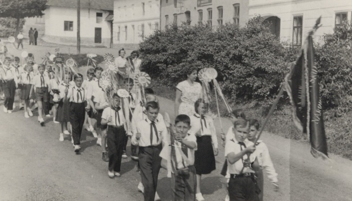 Průvod žáků-pionýrů 3.4.5. ročníku.
