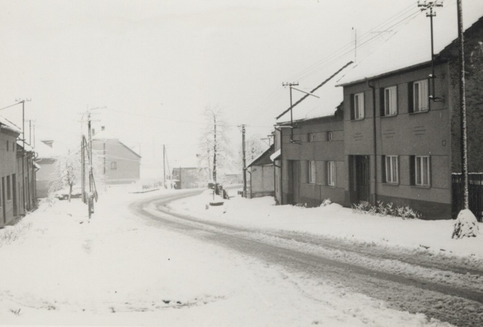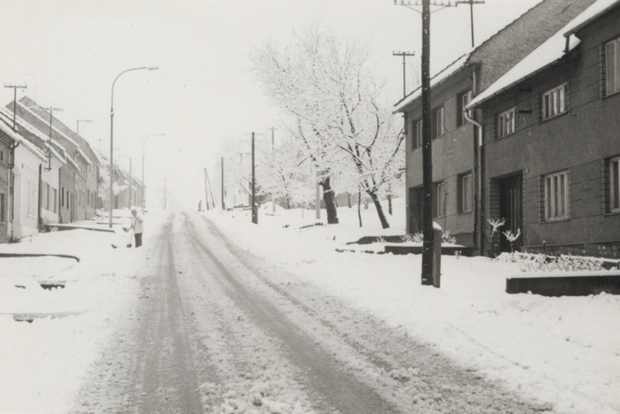 Pohled na ulici v horní části obce ráno 6:15 Hod. 14. 4. 1978