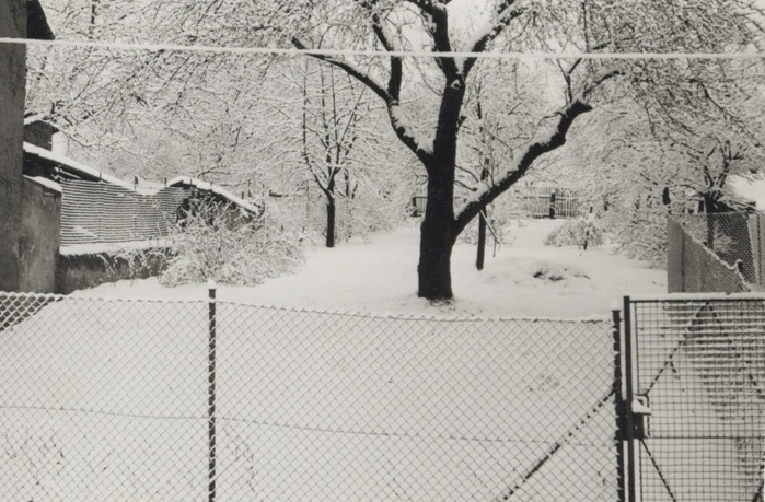 Pohled do zahrady na horním kopci ráno 6:15 Hod. 14. 4. 1978